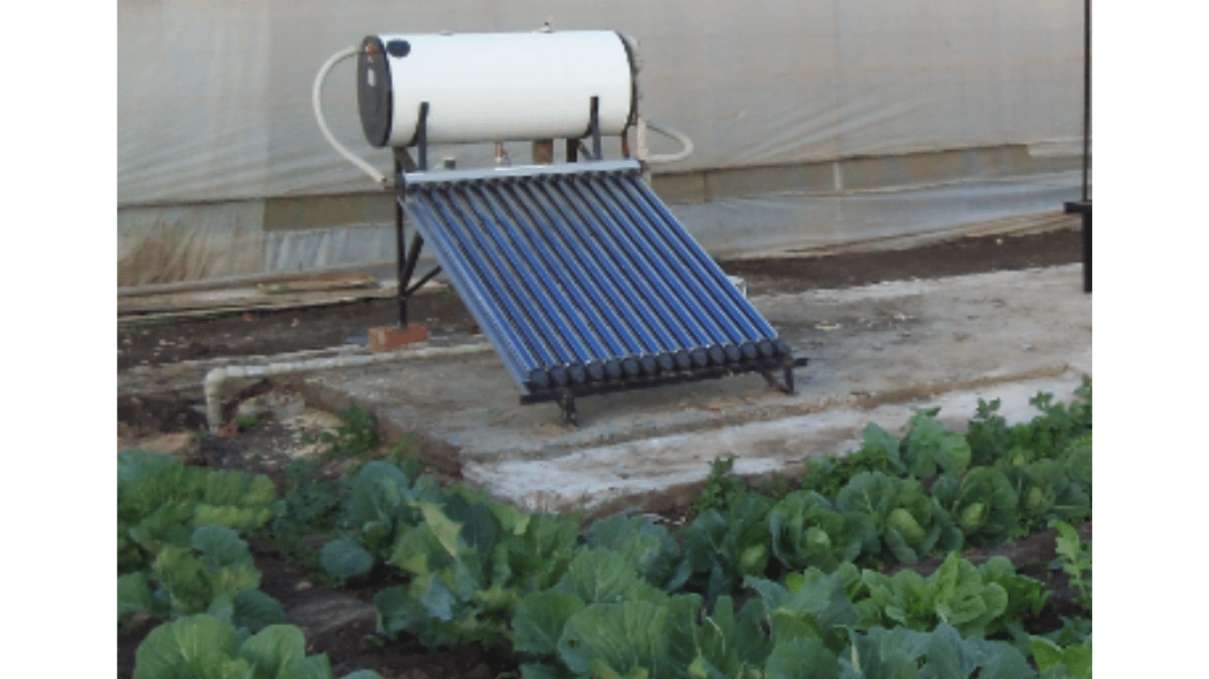 يتكون النظام من مجمعات شمسية، خزان حراري معزول، مضخات تدوير، ووحدة تحكم ذكية لتنظيم توزيع الحرارة داخل المزرعة أو الصوبة الزراعية.